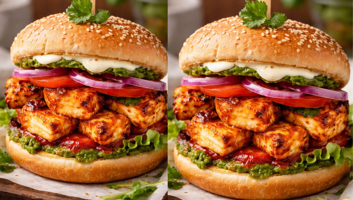 Easy Tandoori Paneer Burger Recipe at Home | Juicy, Spicy & Flavorful